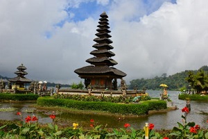 バリ島中部ブラタン湖の湖畔に佇んでいるヒンドゥー教の寺院。1633年メングウィ王により建立され、湖上にある11層のメルには、湖の神デウィ・ダヌが祀られています。